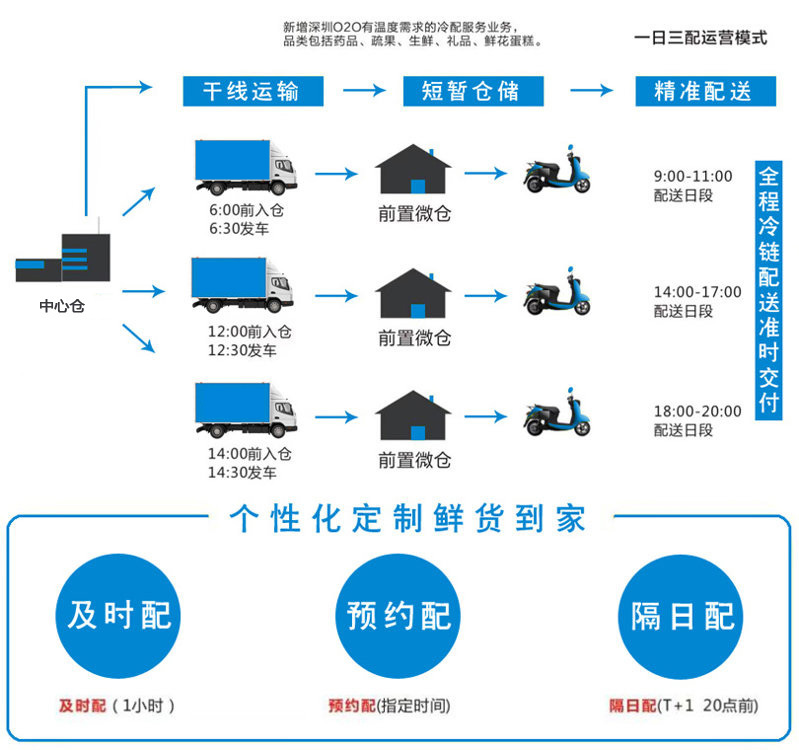 2:城市各區域建立冷鏈前置倉,所有需美女操逼APP的客戶貨物,統一從總倉按照標準時間送至各區域冷鏈前置倉,以共配原則為基礎,有效的降低了運營成本,同時客戶收貨時間也變得靈活多樣,客戶也可選擇前置倉自提。